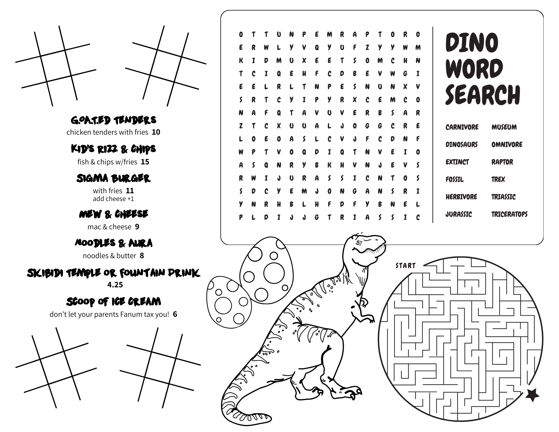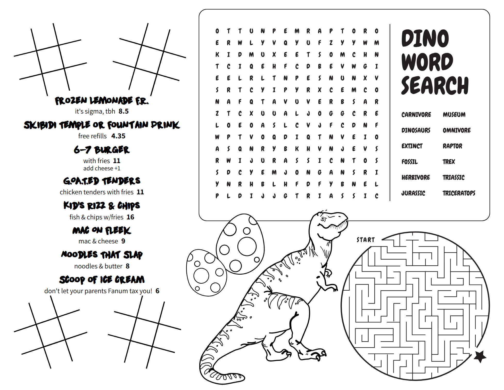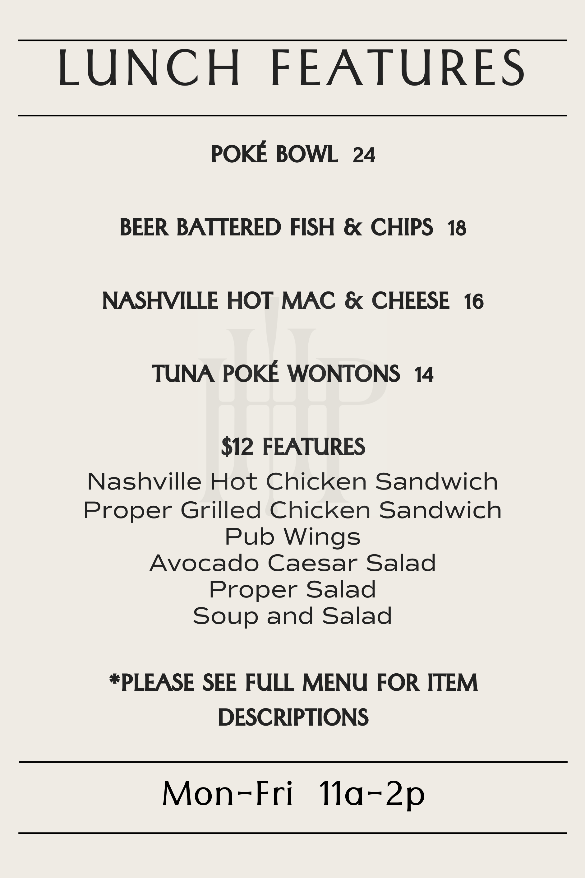 Below this, you will find our Happy Hour, Brunch, Late Night, Kids, and Lunch Features menus.