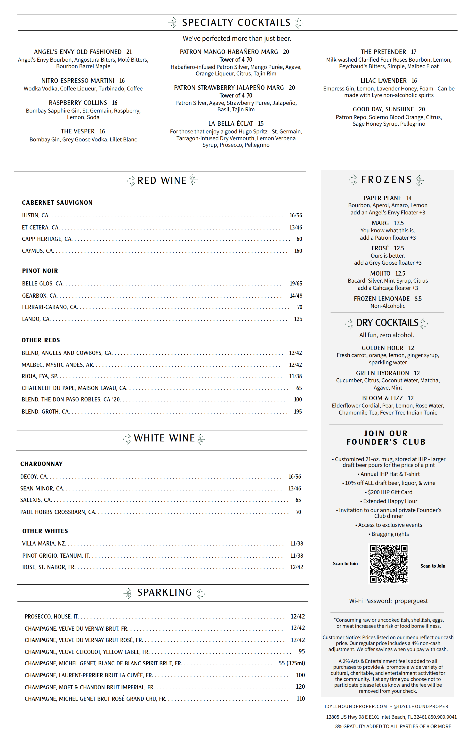 There is something for everyone on our All-Day Menu, which also has our specialty cocktails and wine list. We rotate our beer selections often and typically have 18-24 on tap, so stop in to see what we are currently pouring. From Idyll Hounds brews, to Belgians, to the occasional mead, we keep it interesting!